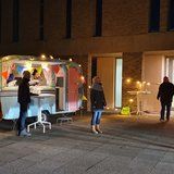 Om 17.00 uur ging onze Drive-in dan eindelijk open en mochten de automobilisten die in de lange file stonden doorrijden. Onze verkeersregelaars hadden de handen vol aan alles in goede banen leiden. Maar zoals verwacht waren de vrijwilligers geduldig en volgden ze gehoorzaam de aanwijzigingen op. Ze werden door een gezellige straat van lampjes geleid en mochten bij één van onze versierde caravans hun welverdiende goodiebag ophalen.