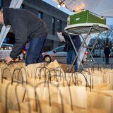 Om 16.00 uur ging onze Drive-in open en mochten de automobilisten, fietsers en voetgangers met hun afhaalbewijs de welverdiende goodiebag in ontvangst nemen.