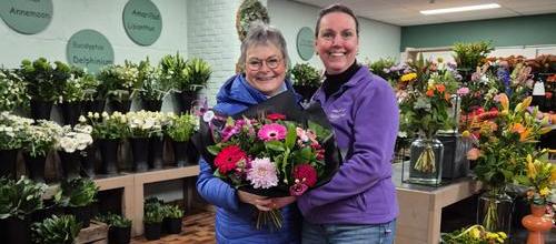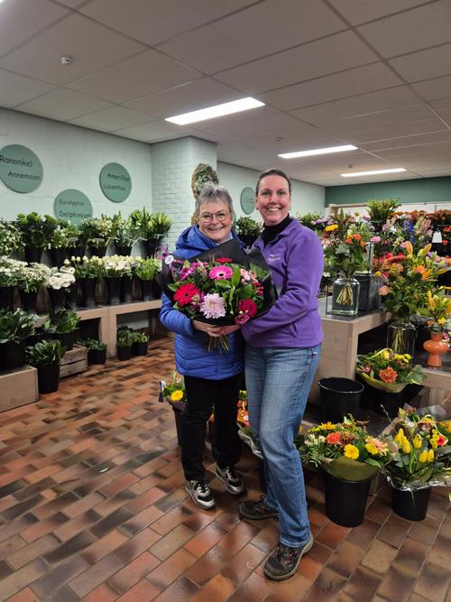 De eerste wens komt van Marlies Copier van de Zonnebloem in Elsloo. Zij vond dat Mariëlle Nijsten wel een bloemetje verdiende. Haar wens luidde: “Een mooie bos bloemen. Jij maakt altijd prachtige stukken voor de verkoopbeurs van de Zonnebloem Elsloo. Nu word jij eens verwend!” En die wens is uitgekomen! Mariëlle heeft een prachtige bos bloemen ontvangen, gesponsord door @Bloemen Monique.