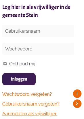 Onder de velden voor de gebruikersnaam en het wachtwoord zie je de linkjes (1) en (2) om je wachtwoord of gebruikersnaam te herstellen.
