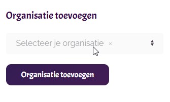 - Op de 'Mijn Profiel' pagina scroll je zover naar beneden totdat je het blokje Organisatie toevoegen ziet.